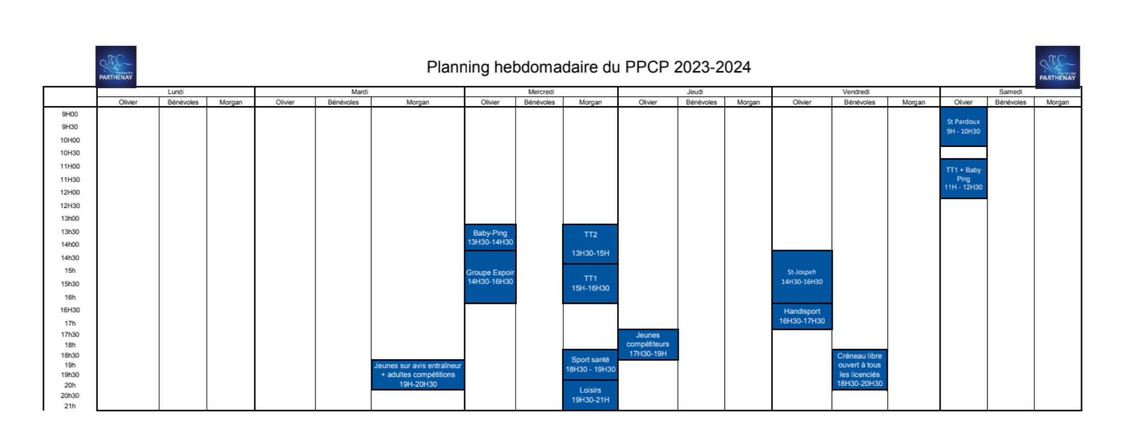 PLANNING DES ENTRAINEMENTS 2023/2024