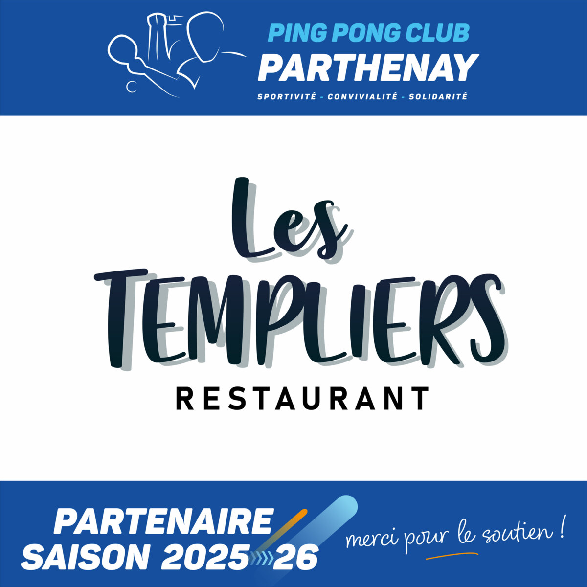 🙏 Un grand merci aux Templiers, partenaire historique du PPCP. Leur soutien précieux nous a permis de renouveler nos séparations, contribuant ainsi à améliorer les conditions d’accueil et de jeu au sein du club.